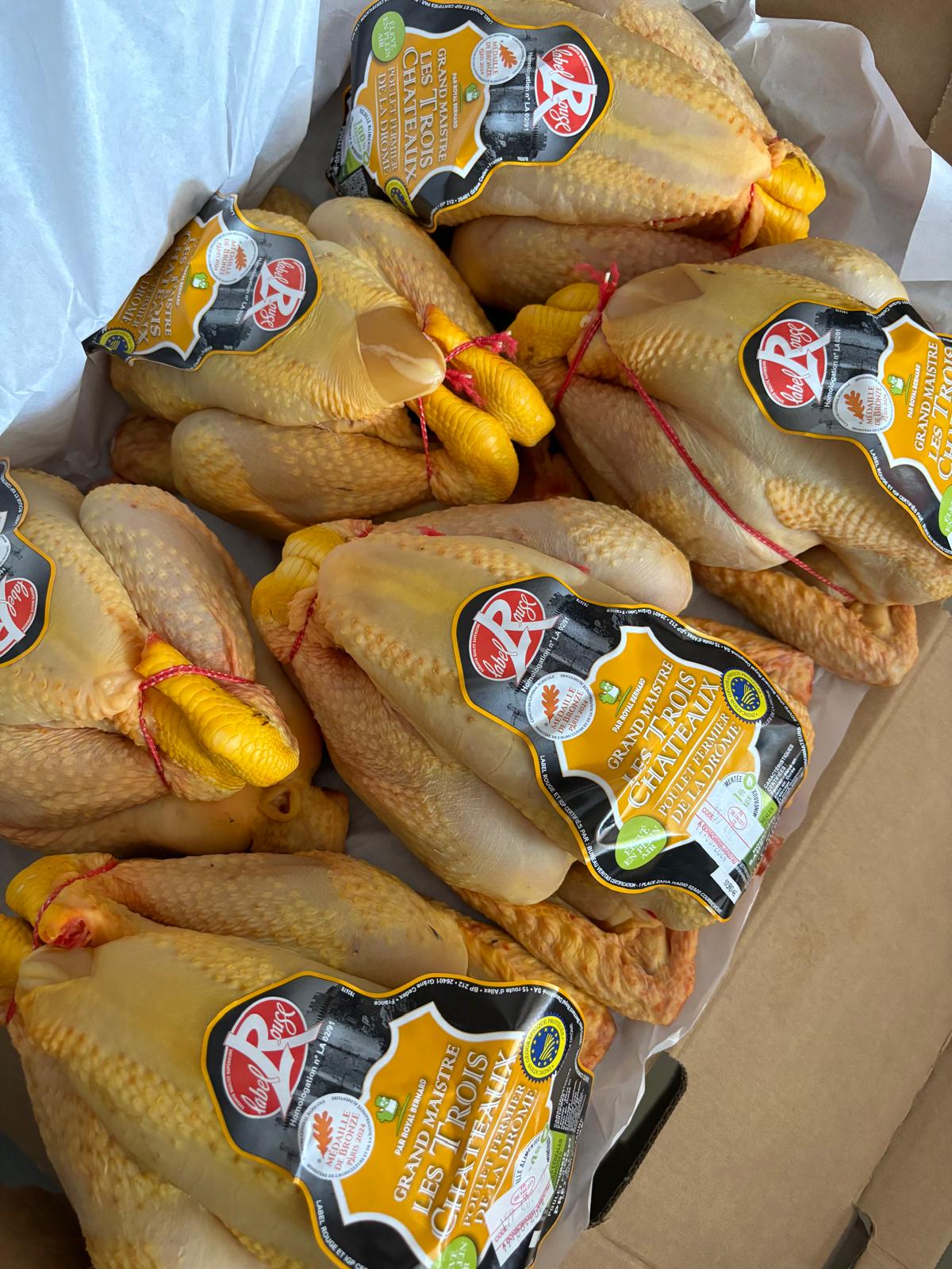 cuits à la perfection. Chaque poulet est sélectionné avec soin pour sa qualité, puis rôti lentement afin