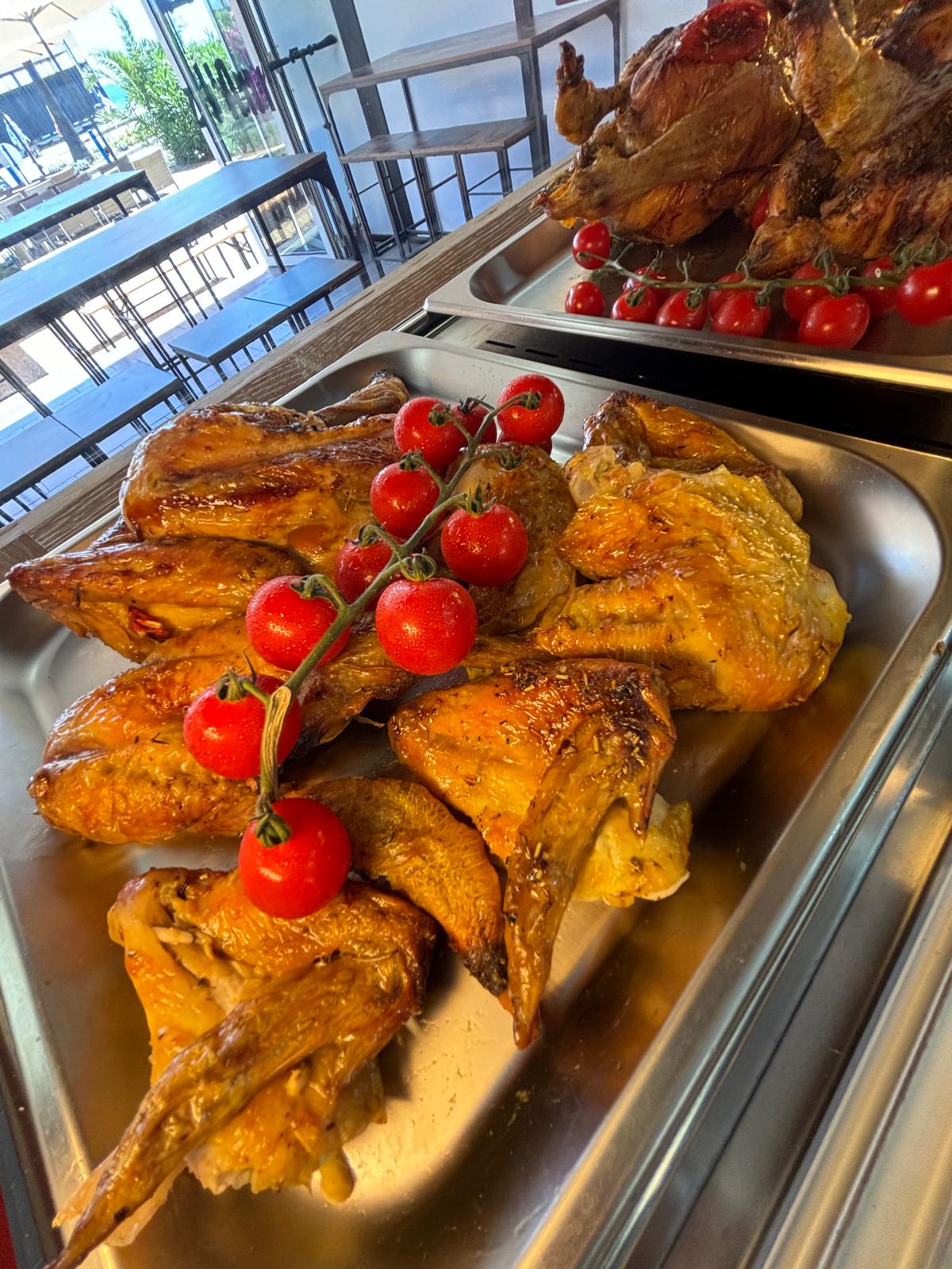 Nos poulets sont assaisonnés avec notre mélange secret chaque jour pour sublimer la saveur de la viande. Que vous soyez amateur de viande grillée, de peau croustillante ou de chair fondante, vous trouverez dans nos poulets une expérience gustative inégalée. Accompagné de nos garnitures aux choix. Découvrez pourquoi nos poulets sont si recherchés à Cavalaire-Sur-Mer !